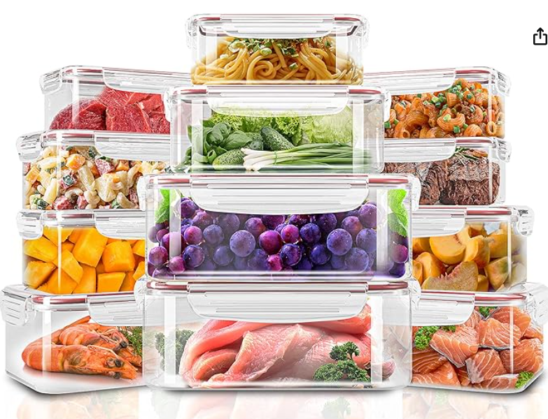 -Juego de 24 piezas: incluye 12 recipientes y 12 tapas de varios tamaños. Para adaptarse a las diferentes necesidades de almacenamiento, el juego incluye 4 recipientes con una capacidad de 16.9 fl oz, 4 recipientes de capacidad de 40.6 fl oz, 4 contenedores de 76.1 fl oz de capacidad.